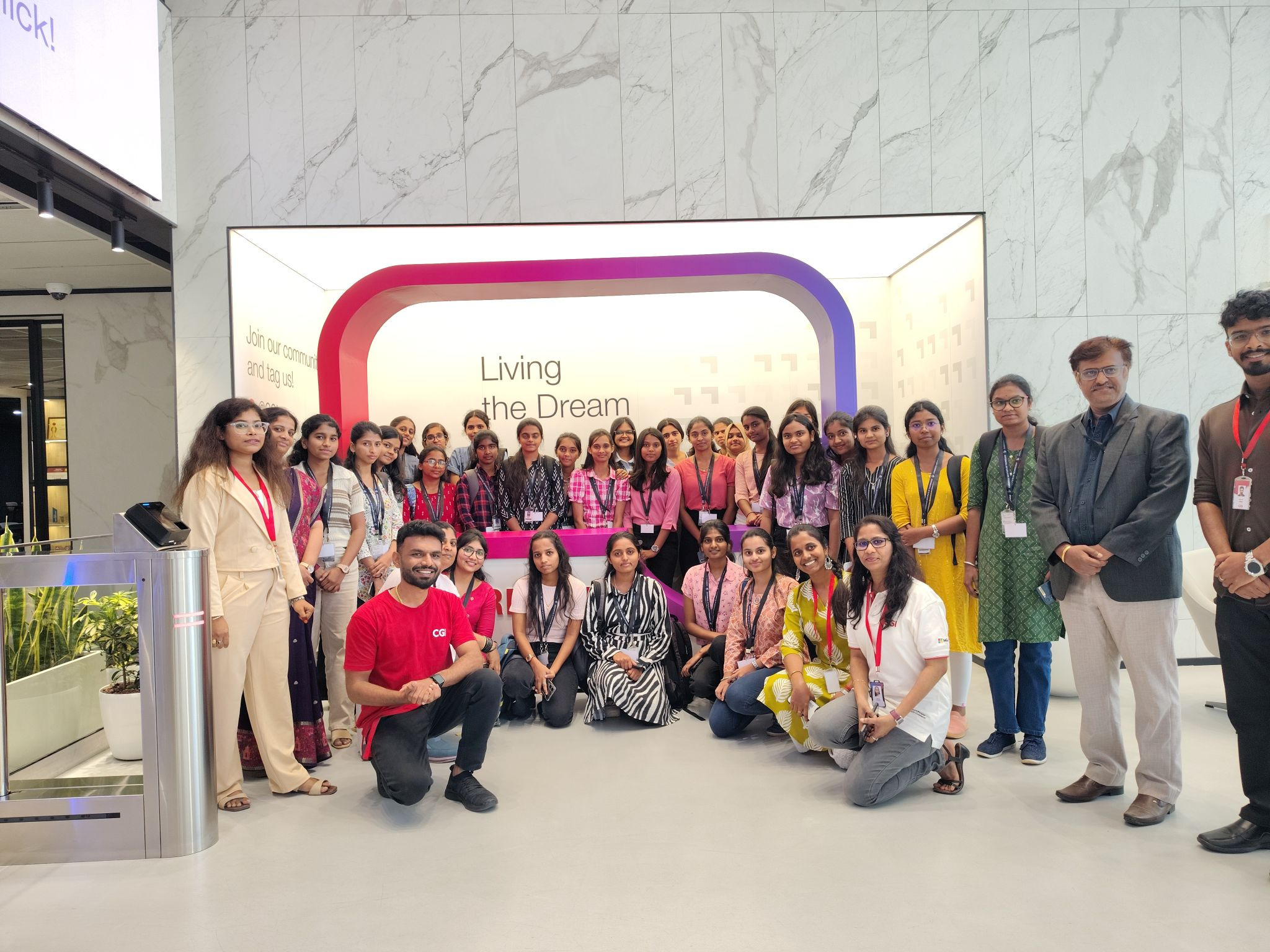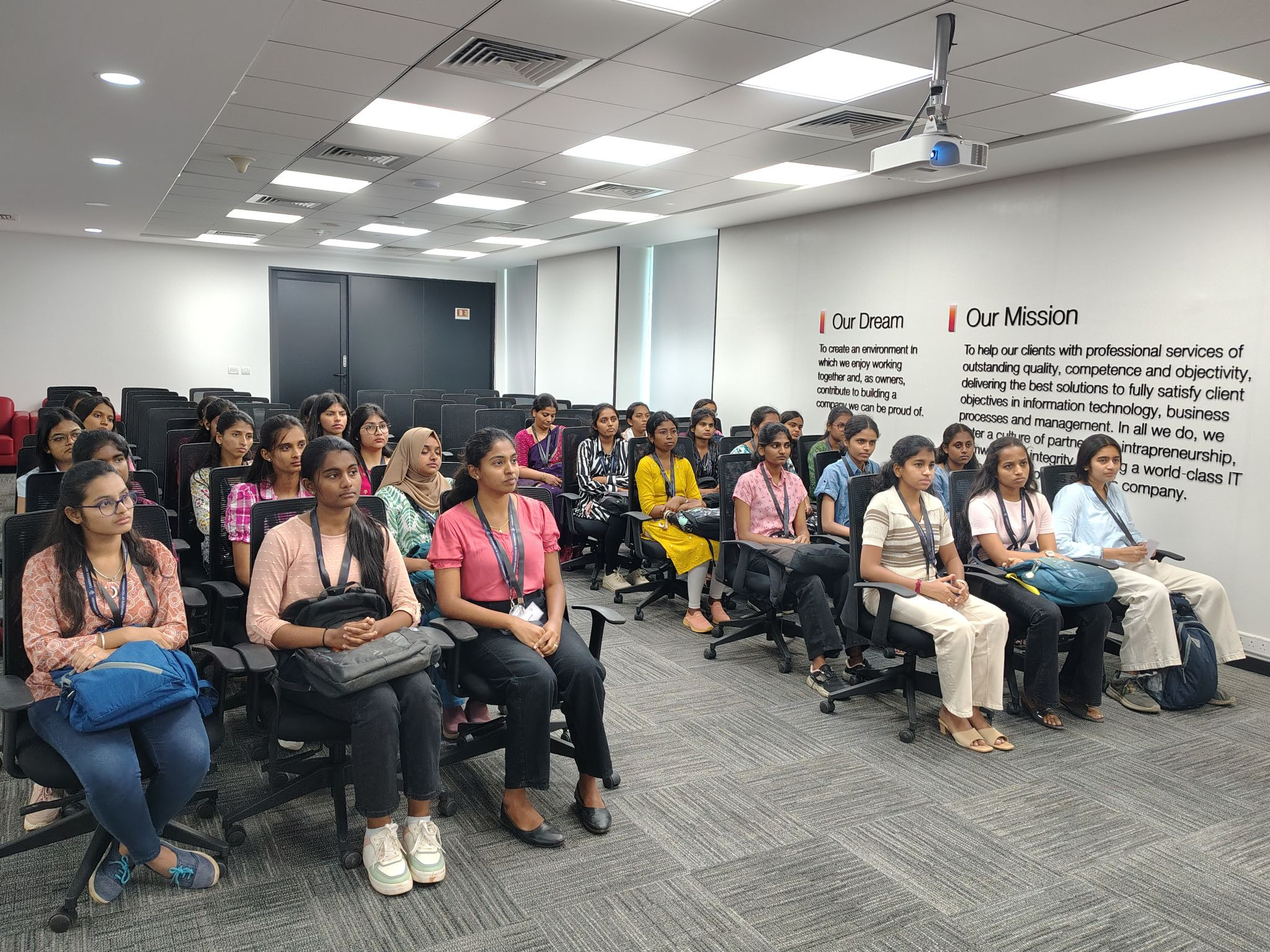 As part of our academic curriculum, our department organized an industrial visit to CGI. The objective of the visit was to gain practical exposure to corporate work culture, understand industry expectations, and explore real-world applications of technology in a professional environment. Upon arrival at the company premises, we were issued visitor ID cards and directed to a seminar hall where the sessions were conducted.