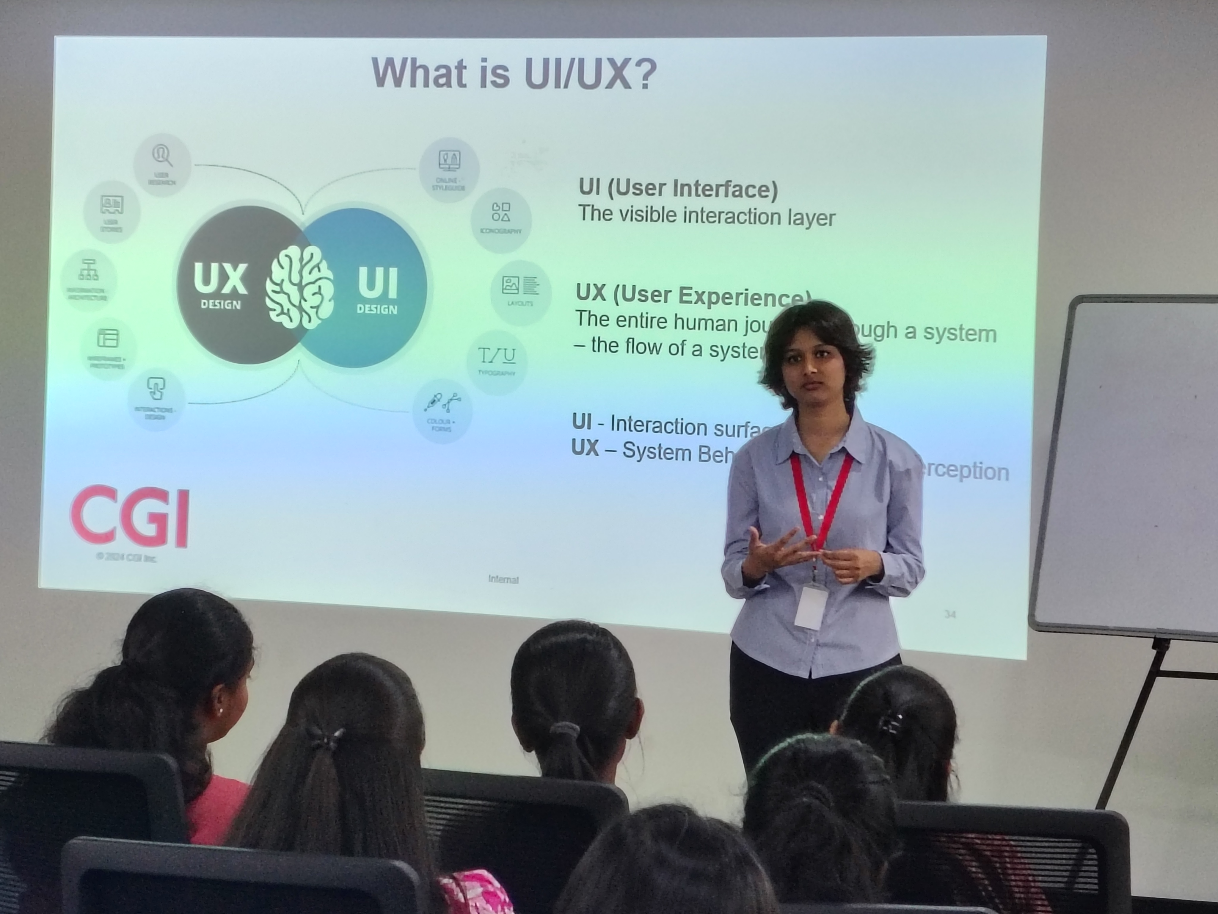 During a short delay between sessions, a volunteer named Arun Kumar interacted with us and explained the company culture, internal events, and work-life balance initiatives. Another speaker from a Mechanical Engineering background shared his inspiring journey of completing online courses and continuously developing his skills, which helped him secure a position at CGI. This session highlighted that consistent effort and determination matter more than one's academic background.